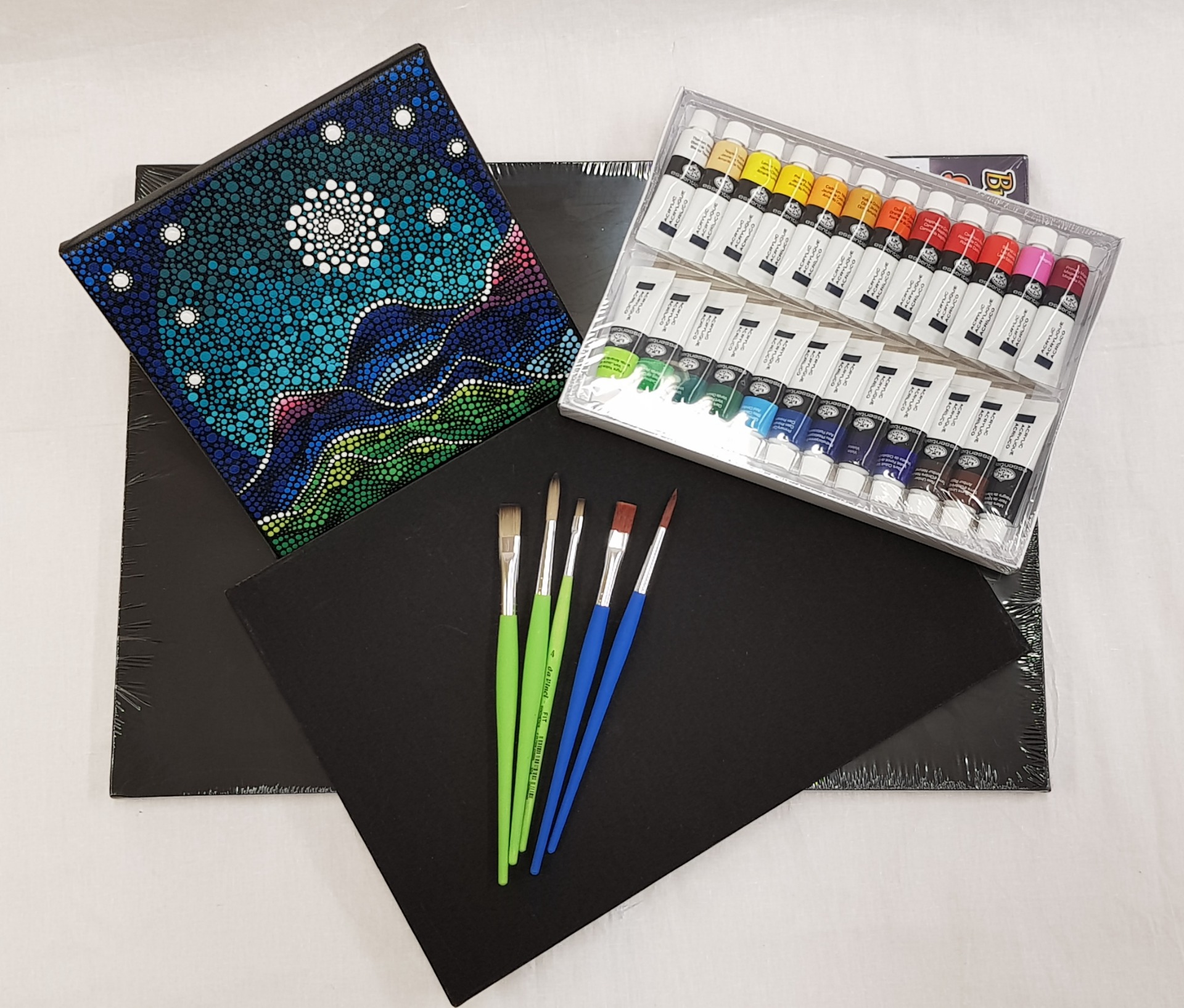 Akrylové barvy - tyto barvy na vodní bázi jsou neuvěřitelně univerzální a po zaschnutí voděodolné. Skvěle drží na nejrůznějších površích, od plátna, dřeva, plastu a kamene až po kov a sklo. Na lesklých nesavých materiálech je však lepší je zafixovat akrylovým lakem (také v nabídce jak ve spreji tak i v lahvičce k natření). K ředění se dá použít voda, ta ale snižuje kryvost. Proto jsou ideální speciální ředidla do akrylových barev, které také nabízíme. Akrylové barvy jsou ideální pro rychlou malbu a snadno se míchají špachtlí nebo štětcem. K dostání jsou i akrylové popisovače.
