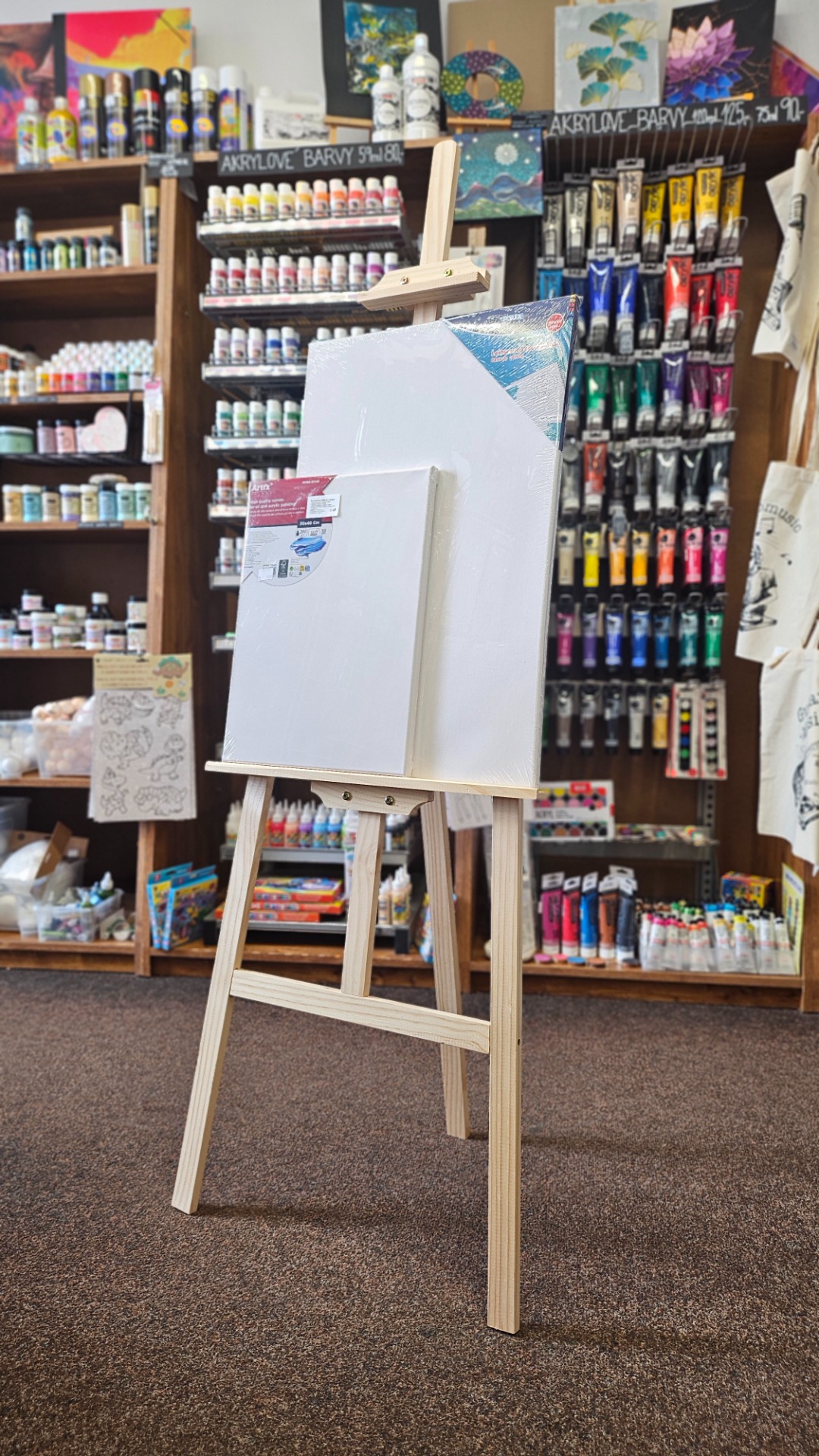 Malířská plátna a stojany - pro malbu akrylovými nebo olejovými barvami jsou ideální už našepsovaná plátna natažená na napínacím rámu, nebo šepsované lepenky. K dispozici jsou různé velikosti. Malířské stojany pak poskytují oporu a pohodlí při tvorbě.