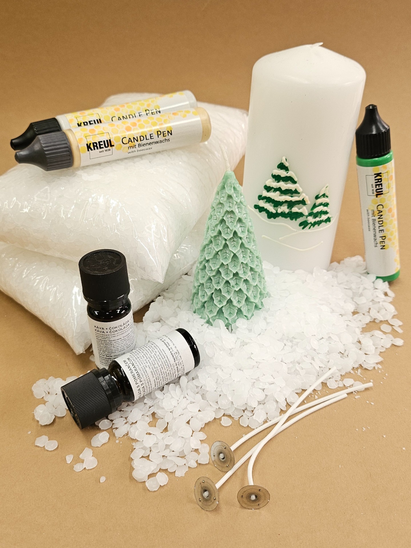 Svíčky a mýdla - nabízíme vše potřebné pro domácí výrobu svíček (parafín, krystalický palmový vosk, knoty, barviva, vonné esence) a mýdel (mýdlové hmoty, formy, vůně).